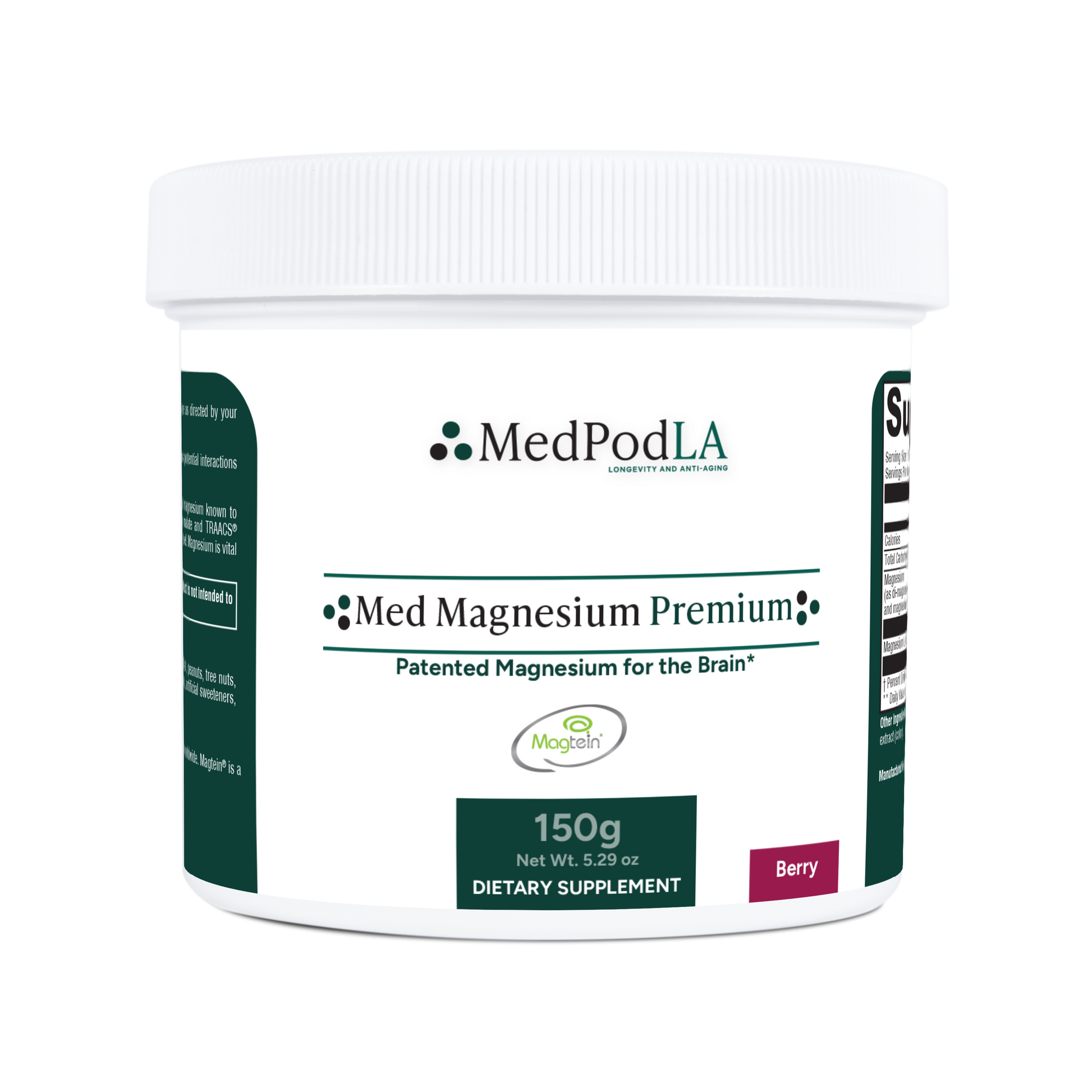 Med Magnesium Premium features di-magnesium malate, magnesium lysinate glycinate chelate, and magnesium L-threonate, a unique combination of magnesium formulated for enhanced bioavailability to support brain health and promote healthy nervous system functions. This formula is conveniently available in mixed berry, lemon-lime, and unflavored powder.*